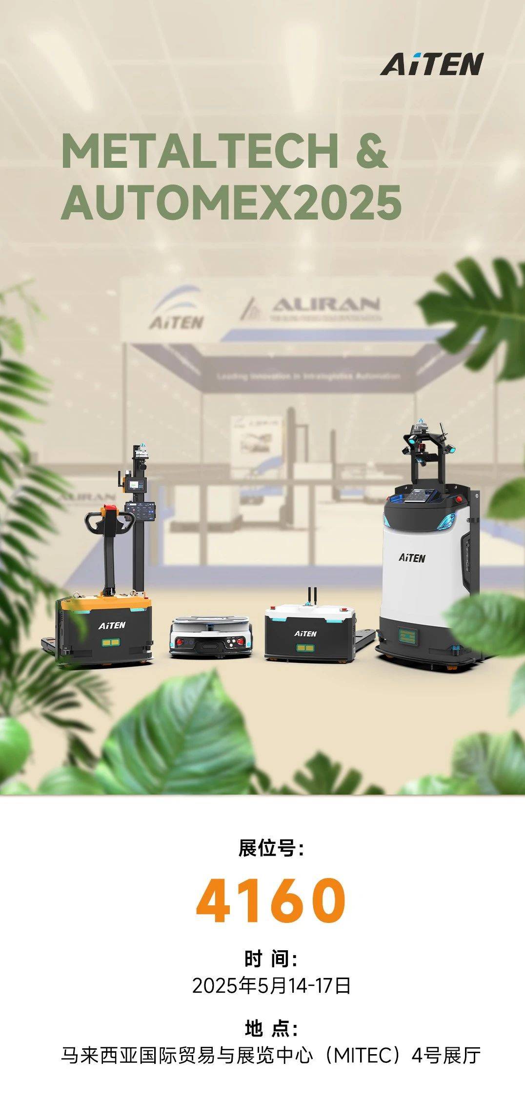 倒计时启动!诚邀您参与现场动态演示,星空电竞(StarSky Sports)AiTEN将携搬运移动机器人AM15,MP10,APE15,TT15惊艳亮相(2025.5.14-17)。